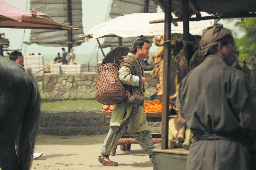 在昨日上午的開機儀式上,小沈陽就以一身古代鞋匠的落魄裝扮出現,連腳下的布鞋也是破破爛爛的感覺。小沈陽換上造型之后自己也忍俊不禁,尤其喜愛分配給他的道具——斗笠和竹編大筐,連候場時也不離身。
