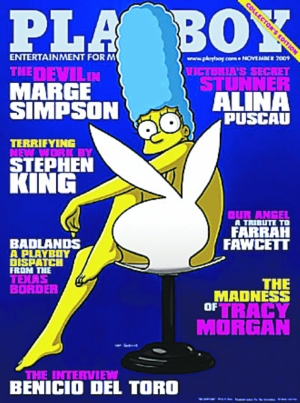 瑪麗蓮·夢露、辛迪·克勞馥、帕里斯·希爾頓……美國男性雜志《花花公子》一向以香艷著稱。在創建50多年以來,它的歷任封面簡直可以集合一部世界性感女郎史。不過,兔女郎的選拔的風向標卻在近日轉向。據路透社報道,一位家庭主婦即將登上本月16日上市的11月號雜志的封面。她叫瑪吉·辛普森,只是個卡通人物,來自全美最受歡迎的卡通長壽劇《辛普森一家》。這是《花花公子》歷史上首次啟動卡通封面女郎,原因是吸引年輕讀者,拯救銷售量。