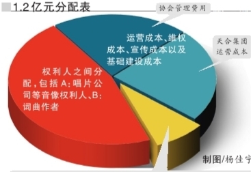 音集協(xié)常務(wù)副理事長(zhǎng)、總干事王化鵬告訴記者,此次方案中確定的50%提取比例,其中有23%是協(xié)會(huì)的人員運(yùn)營(yíng)管理費(fèi)用,另外27%是天合集團(tuán)的運(yùn)營(yíng)成本。雖然收取的版權(quán)費(fèi)總數(shù)看似可觀,但為了開(kāi)展收費(fèi),音集協(xié)委托的天合集團(tuán)在全國(guó)的30個(gè)省、自治區(qū)、直轄市建立了子公司,員工總數(shù)達(dá)到450余人,同時(shí),為了推動(dòng)收費(fèi)進(jìn)程,音集協(xié)先后在18個(gè)省市就卡拉OK侵權(quán)提起了960多起行政投訴和民事訴訟。這些費(fèi)用再加上曲庫(kù)建設(shè)、宣傳、市場(chǎng)稽核等費(fèi)用,已投入權(quán)利人自籌資金3.6億元,而服務(wù)商天合集團(tuán)的投入已達(dá)到5.6億元。隨著收費(fèi)的增加,提取的管理費(fèi)比例還會(huì)相應(yīng)降低。