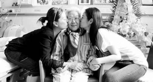 趙薇和張瑞芳聊得十分投機,張瑞芳也一直緊緊地握著“小燕子”的手,看得出張瑞芳對年輕演員的呵護。為了怕張瑞芳聽不清楚自己的話,原本坐在床上的趙薇還尊敬地跪在了地上。臨走時,趙薇與林心如還特意親吻了張瑞芳,得到香吻的老藝術家笑容滿面,執意站起身來為大家送行,趙薇一直攙扶著老人,她也表示,自己以后每年都會來看望張瑞芳,為其慶生。