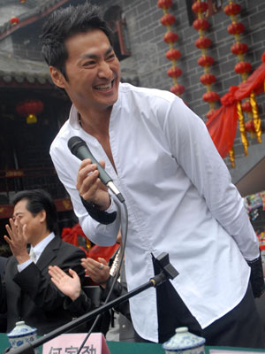 提起何家勁,不能不說到“展昭”,當年他出演《包青天》中的展大俠俘獲了無數影迷的心。時隔15年,何家勁入川拍攝一部講述成都客家人“遷徙史”的電視劇《滾滾血脈》,不過他不再舞刀弄槍,飛檐走壁,而是憑智慧建家園。昨日上午,該劇在洛帶古鎮舉行了新聞發布會,何家勁和女主角鄔倩倩等亮相,好動的他搶盡所有人的風頭,現場大秀半生不熟的客家話,誰料卻遭到服務員小妹的“奚落”。