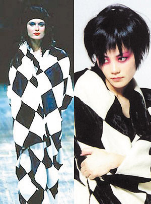 對于新出爐的“紅眼妝”,何琳卻持保留意見,“我眼部的妝容也是葉錦添老師特意要求的,劇里也只有我有這樣妝。我的妝也比其他女孩子濃,都是為了配合元春華麗富貴的頭飾和服飾,突出厚重感。在戲中我覺得很美,生活中出現(xiàn)我也會覺得太可怕,太夸張了吧!币恢眻(jiān)持新“紅樓”人物造型要走昆曲風(fēng)的葉錦添此次有如此創(chuàng)舉其實(shí)早有跡可循,之前公布的襲人、尤二姐也涂有粉紅色的眼影,只是沒有像元春那樣沖擊力強(qiáng)的鮮艷大紅突出眼部。有趣的是,元春這款眼妝和王菲推出《寓言》和《王菲》時(shí)先鋒兼頹廢的“紅眼妝”一模一樣。