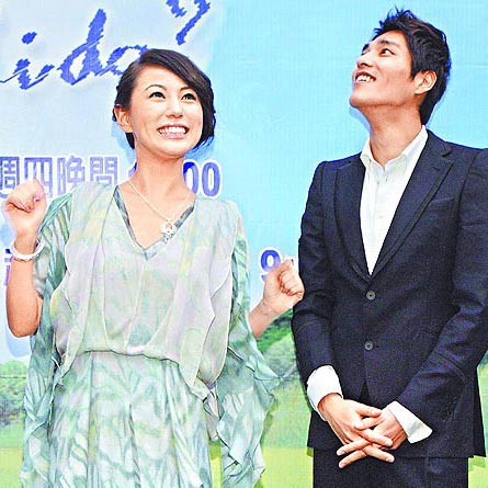 中新網12月15日電 藍正龍與劉心悠昨為臺視、TVBS-G偶像劇《幸福的抉擇》造勢,2人日前傳出假戲真做,昨記者會上,藍正龍毫不避嫌,不時體貼地伸手攙扶劉心悠,也難得露出笑容說:“與漂亮女生合作,心情很好。”她則贊他:“我拍戲容易緊張,他都會講冷笑話讓我放松!