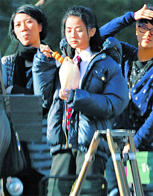 后來劇組移到松信路拍她吃小吃攤,她才吃完便當不久,照樣狂吞鹵肉飯,不知是真的敬業還是難敵美食小吃。