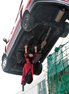 中新網(wǎng)2月2日電 蔡少芬昨日再化身女飛人,拍攝新劇《飛女正傳》。拍攝期間,蔡少芬被吊高到半空拍攝,事后忍不住笑說(shuō):“我真是吊到想自殺,拍完后都能做超人了。”