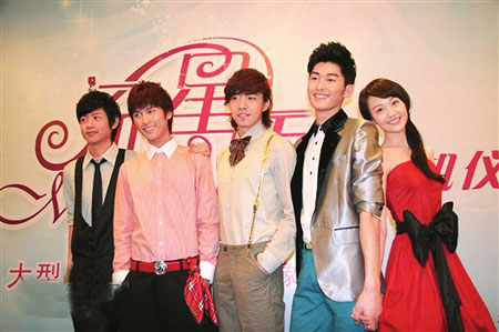 網友抵制、遭遇侵權糾紛、選角有爭議……湖南衛視自制勵志偶像劇《流星雨》自宣布籌拍以來便因披上了《流星花園》的“馬甲”而惹來無數爭議。昨日,該劇在廈門亞洲海灣大酒店宣布正式開機,劇中的新版F4及“杉菜”逐一亮相,可惜飽受質疑的新F4并沒有抓住機會證明自己,反因為土氣的造型由里到外把所有人“雷”了一把狠的,反倒是清新靚麗的新“杉菜”鄭爽給人留下了不錯的印象。