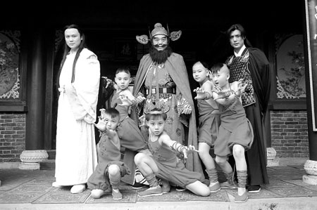 不過,歐陽震華想讓自己變胖其實還有更深層次的考慮。他說,來橫店一個多月了,平時也仔細留意這里的各色人等,發現無論是工作人員還是演員,胖的很少,特別是演員,即使是群眾演員也沒幾個胖的。“現在演員這行業競爭這么激烈,大家都變瘦肯定會沒飯吃啦,而我提前讓自己胖起來,說不定以后戲就多嘍,你瞧,這《天師鐘馗》就是因為我長得有點胖才讓我當主角的嘛!”