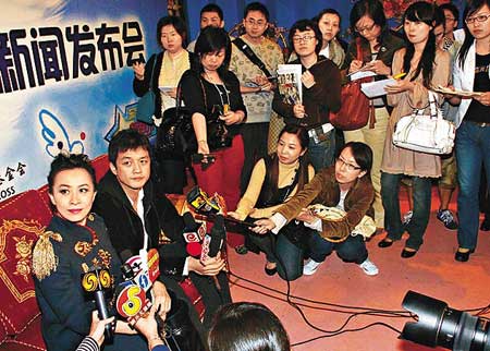 劉嘉玲和李亞鵬前日在上海出席嫣然慈善晚宴的記者會。
