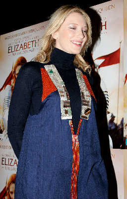 根據《悉尼先驅晨報》報道,38歲的布蘭切特前晚亮相新片《伊麗莎白2:黃金時代》的悉尼首映式,在紅地毯上被記者問及是否懷孕,她干脆地回答:“是的。”而當記者提起傳聞說她這次懷的是個男孩時,布蘭切特回應說:“你們知道的比我還多。現在還早呢。預產期在明年4月!