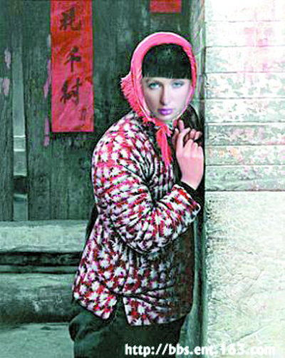 而網友就為她設計了很多有中國特色的服裝,其中,有一張“純樸的小!碧貏e引人注目。在這張作品里,希爾頓的頭發被“染”成了黑色,穿著紅底白色碎花小棉襖,頭上還裹著塊紅布,害羞地倚在家門口的墻上,表情還略帶幾分期待。此情此景,讓人情不自禁地聯想起鞏俐在《秋菊打官司》中的造型。但與“秋菊”相比,希爾頓顯然要少幾分倔強、多幾分嫵媚。 (王文)
