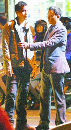開拍前任達(dá)華(右)細(xì)心地幫張孝全整理服裝,展現(xiàn)大哥風(fēng)范。