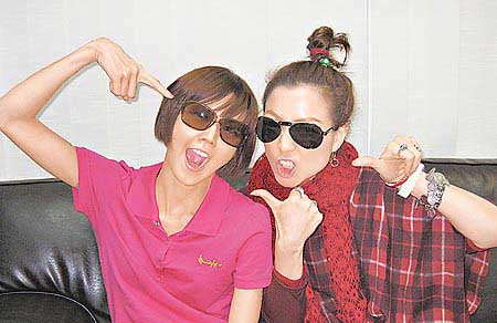 孫燕姿(左)、鄭秀文交情好,扮鬼臉自?shī)蕣嗜恕?br/>
