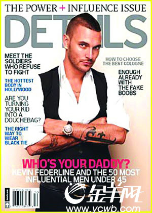 上圖:凱文•費(fèi)德林登上《Details》雜志封面。
