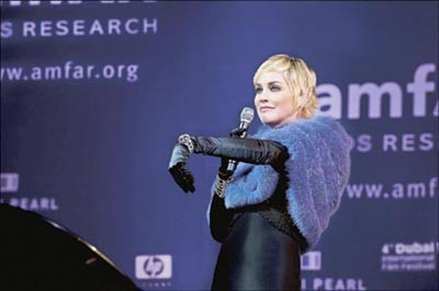 中新網12月21日電 好萊塢巨星莎朗·斯通于上周舉行的“第四屆迪拜國際電影節”期間,參與“Cinema Against AIDS”慈善晚宴及拍賣活動,為資助艾滋研究的基金會amfAR籌款。