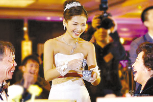到了給長輩敬酒的環節,劉濤甜蜜宣布,自己已經懷孕,并且將在婚后退出娛樂圈,努力做個好太太,相夫教子。聞言,新郎父母十分開心地頻頻點頭,大贊劉濤是個“好姑娘”。