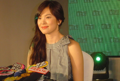 喜歡看韓劇的人幾乎都知道宋慧喬,她主演的《藍色生死戀》、《浪漫滿屋》等影片被無數韓劇迷追捧。由于具有魅力無窮的容貌,宋慧喬去年被媒體評為在男性觀眾的心目中“最想擁抱”的韓國女星。昨日,這個男人“最想擁抱”的韓國女星來到了北京,為夏士蓮產品做代言。這兩天北京的氣溫很低,達到零下三四度,愛美的宋慧喬穿裙子出場,全場記者和影迷為之驚嘆。
