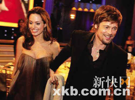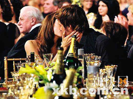 2008年1月27日,第14屆美國演員工會(huì)獎(jiǎng)(SAG)在洛杉磯舉行酒會(huì)。穿一襲抹胸禮服的安吉麗娜·朱莉與布拉德·皮特甜蜜亮相,兩人十指緊扣步入會(huì)場,席間不時(shí)私語,情到濃時(shí)更當(dāng)場幸福擁吻,濃情蜜意羨煞旁人。