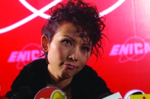 圖文:蔡少芬代言女性服飾 金衫配紅色卷發亮相