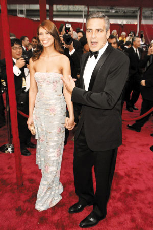 克魯尼紅地毯上與女友秀恩愛 臺下演"老友記"(圖)