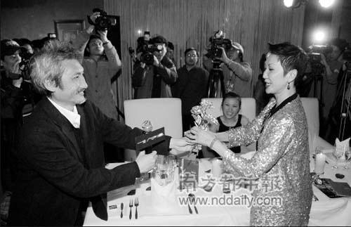 當天,現場三位女主角齊齊將收到的金玫瑰送給徐克。徐克卻忽然走下舞臺,穿過前面的數十位記者,走向坐在臺下觀眾席上的施南生身邊,連同自己手上的金玫瑰,向施南生獻上了4朵金玫瑰,而且當眾深情地對施南生說“金玫瑰當然要給最好的女人,你永遠是最好的女人!边@番話顯然讓施南生頗為感動和驚喜,她捧著金玫瑰,不由眼泛淚花。