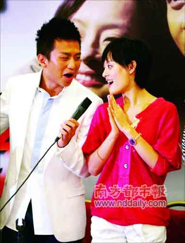 正在熱戀中的孫儷和鄧超前日齊齊亮相北京,為兩人攜手主演的電視劇《甜蜜蜜》在當(dāng)?shù)亻_播造勢(shì)。發(fā)布會(huì)上,兩人不時(shí)眉目傳情、親昵耳語,更搭肩合唱《甜蜜蜜》。孫儷還昵稱鄧超為“小綿羊”,現(xiàn)場(chǎng)大秀恩愛,毫不避嫌。