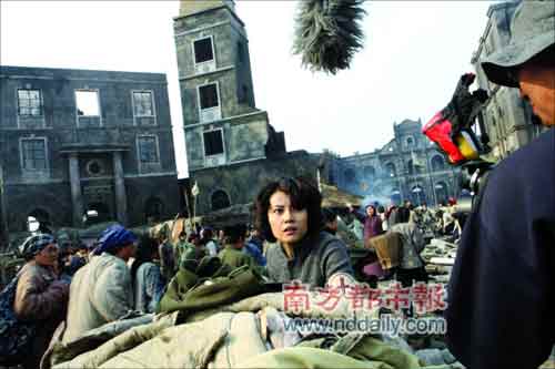 陸川的《南京,南京》以一種摧枯拉朽,再重建一切的方式呈現在探班記者面前,包括重建主演高圓圓。