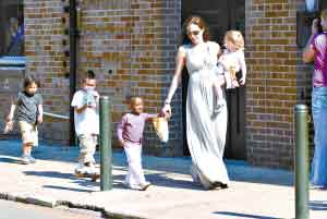 安吉麗娜·茱莉攜兒女逛街 展超級(jí)星媽幸福姿態(tài)