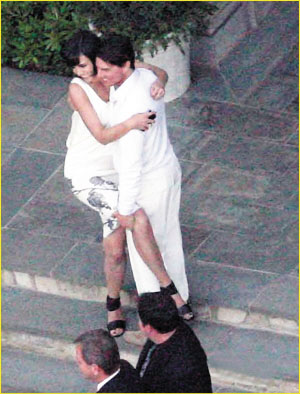 湯姆·克魯斯與凱蒂·霍爾姆斯入住新豪宅,請(qǐng)來(lái)眾多好友慶祝。湯姆·克魯斯看到狗仔隊(duì)偷拍很不高興