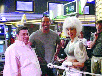 在好萊塢環(huán)球影城大火中躲過一劫后,黃圣依參演的迪斯尼巨制《巫婆山》正式轉(zhuǎn)場到美國賭城拉斯維加斯。黃圣依的外星公主造型曝光后,昨天她與巨石·強森拍攝了兩人合作的第一場戲——外星公主在外星兵團的保衛(wèi)下乘坐飛碟降臨地球。