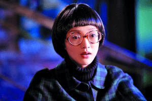 周迅蘑菇頭、大圓眼鏡的造型十分有趣。