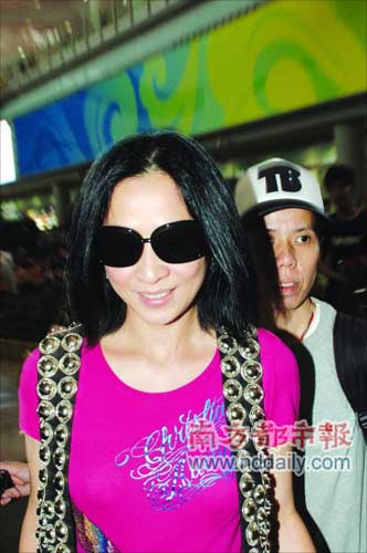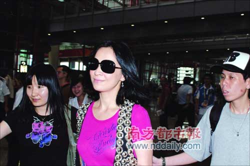 與以往大隊(duì)人馬護(hù)前應(yīng)后的場面不同的是,此番劉嘉玲一行只有二人,走出安檢后,一名女子上前接應(yīng)。劉嘉玲一路電話未停,手拎新款粉色香包,鑲嵌銀飾的馬甲格外耀眼。