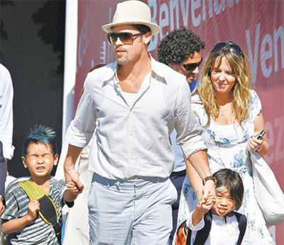 皮特?cái)y兩個(gè)養(yǎng)子亮相威尼斯。