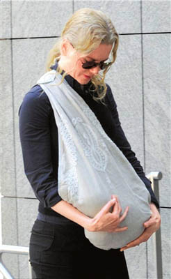 妮可·基德曼前日攜兩個月大的小女兒公開露面,但妮可用布袋將女兒綁在胸前,隱約可見小女兒迷人的草莓金色頭發,繼承了母親妮可·基德曼的基因。