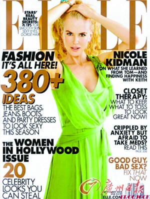 奧斯卡影后妮可·基德曼成為了最新出版的《Elle》雜志的封面人物,并為該雜志拍了一組照片,照片中的妮可依舊高貴優雅,這位41歲的“新媽媽”為了宣傳主演的新電影《澳大利亞》暫時遠離了她與丈夫凱斯·厄本及女兒在田納西州首府納什維爾的田園生活。