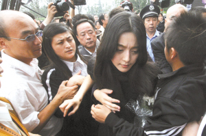 由于沒有對明星設置特殊通道,范冰、趙薇等明星在進入芙蓉大廳時,尷尬地被群眾圍困。