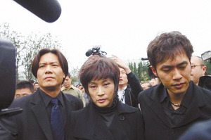 在走過紅地毯后,謝家人便被安排進了休息室。直到下午1時30分左右,接受演藝界人士的悼念時,才走進現場。徐大雯看上去有些輕微的浮腫,眼睛紅紅的,卻表現得很堅強,直到被濮存昕等人擁抱時,才忍不住哭出聲音。