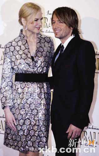 周一,妮可·基德曼攜丈夫厄本現身巴黎,為圣誕節將在法國公映的《澳大利亞》做前期宣傳。