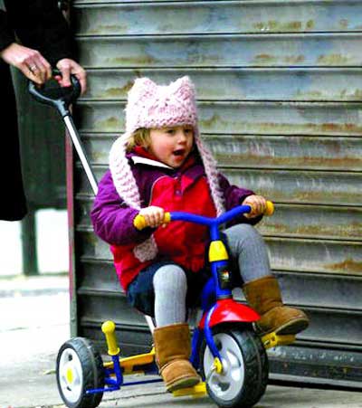 已故男星希斯萊杰的女兒蒂達羅斯萊杰近日現身街頭。小蒂達騎著一輛兒童三輪車,紅衣、粉帽、棉靴很是可愛。也許是自己的車技并不高,也許是玩得很開心,小蒂達滿臉微笑,真不知,希斯萊杰若在天堂見到此情此景,又是如何一番感受。