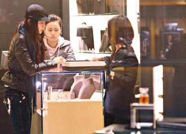 經常以性感裝束示人的李冰冰,前日戴黑帽、穿黑色羽絨褸、黑長褲,逛名店,同行還有兩女一男友人。約下午五時半,素顏的冰冰與友人先到女裝部看鞋,不消一會已有斬獲,之后再揀新裝,期間見她于店內穿梭,但始終揀不到心水貨品。