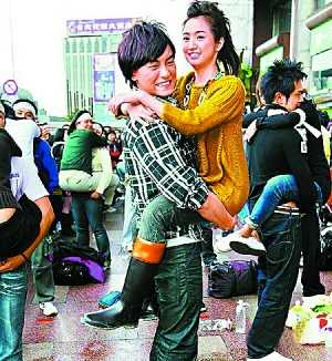 林依晨與“小綜”鄭元暢上周日為《我的億萬面包》宣傳,在臺北車站前重現(xiàn)劇中的“情人擁抱大賽”,兩人還上臺示范抱抱姿勢。由于林依晨怕自己太重令小綜抱不起她,故意整天不敢吃東西。問到兩人私下有沒有可能參加這類比賽?林依晨說:“獎金很吸引,但我較適合參加斗氣比賽。”小綜說:“我較適合參加大胃王比賽吧!”