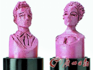 對渴望用嘴唇親密接觸布拉德·皮特和安吉麗娜·茱莉的影迷來說,有辦法了!因為45歲的皮特和33歲的茱莉雙雙贏得了美國某化妝品網站“最想親吻的藝人”票選冠軍,該網站特別委托微型雕塑家威拉德·維岡(Willard Wigan)為他們雕刻了頭像口紅做紀念。