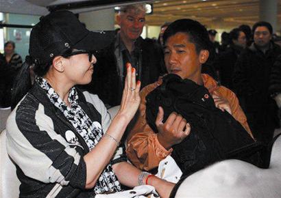 當天下午6時左右,梁朝偉攜劉嘉玲出現在首都機場T3航站樓,立即引起了群眾的注意,并有影迷拿出本子讓梁朝偉簽名。梁朝偉身穿一件橘色外套配牛仔褲,向媒體及影迷展示招牌笑容。劉嘉玲則是一身黑白運動裝,戴著黑框眼鏡和鴨舌帽,不時揚手大秀閃亮婚戒。