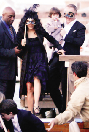 長達(dá)兩天的婚禮處處經(jīng)過精心布置。上周五,主人家按照傳統(tǒng),在威尼斯古跡海關(guān)大樓舉行了一場晚宴彩排以及假面舞會。海耶克、皮諾特帶著他們19個月大的女兒瓦倫蒂娜以及皮諾特與前妻的兒子,乘坐“水上巴士”抵達(dá)會場。無論是婚禮主角海耶克和皮諾特,還是塞隆等來賓均手持面具遮臉。