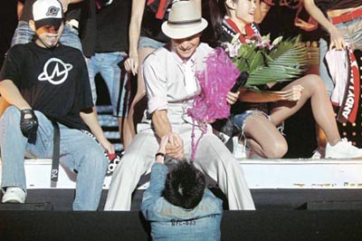 中新網(wǎng)11月8日電 6日,劉德華在成都進(jìn)行內(nèi)地巡回演唱會(huì)最后一站表演時(shí),發(fā)揮“華英雄”本色,救護(hù)一名沖破保安防線欲上臺(tái)送花、卻被十多名保安圍欄的男歌迷。華仔被全場觀眾贊為英雄,不過他表示歌迷犯錯(cuò)是為了支持自己,也當(dāng)眾教訓(xùn)歌迷要守演唱會(huì)規(guī)矩,更笑言想不到加插了一個(gè)高難度真人表演。