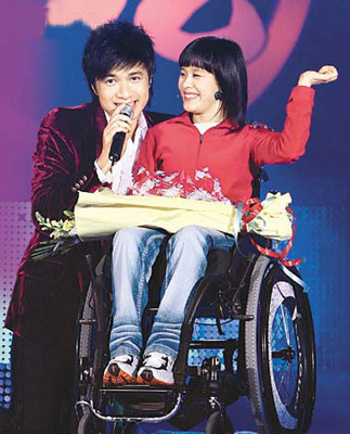 中新網1月3日電 日前古巨基獲中央電視臺與奧委會邀請,出席在北京舉行的倒數晚會,基仔與前運動員桑蘭合唱《好想好想》,由于桑蘭需坐輪椅,為遷就她及拉近距離,基仔跪地合唱,場面溫馨,歌迷亦大合唱將氣氛推至高峰。
