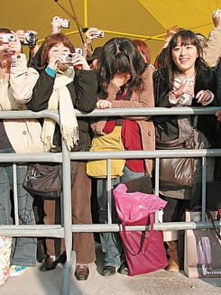 中新網2月4日電 張學友昨日4時45分在西九龍中天地為巡回演唱會的最后一場演出拜神,一身運動衣帽現身的學友一如過往,與在場等候的過百名中、韓、港、臺粉絲逐一握手和收禮物,并且不時露出笑容和舉起拇指,只是明顯有兩聲咳嗽,而現場更有粉絲一見學友即感動落淚。學友雖然未有接受訪問,但拜神期間相當誠心,更準備了雞、鵝、生果、以及4只燒豬。