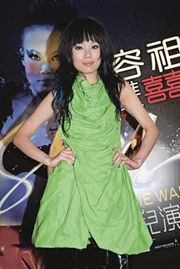中新網2月27 日電 據香港明報報道,容祖兒穿上一襲翠綠色連身裙出席“雙喜臨門慶祝會”,席間除了公布兩張新碟均沖破白金唱片銷量外,她更宣布接替Twins原定4月于紅館的檔期,并加開3場。