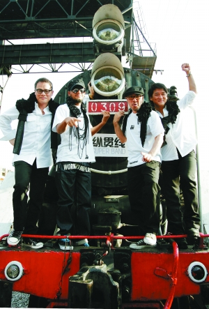 這次發布會的場地特意選擇了北京某藝術區的一個老式火車頭旁邊。四人的造型也頗為統一,白衫黑褲加造型怪異的披肩使得有強烈風格的四人看起來確實頗像一個正式的樂隊。在舞臺上互相調侃之余,四人還正式拿起了吉他演繹了一把即興版的《愛的初體驗》。曲目雖短,但四人風格盡顯韻味十足。