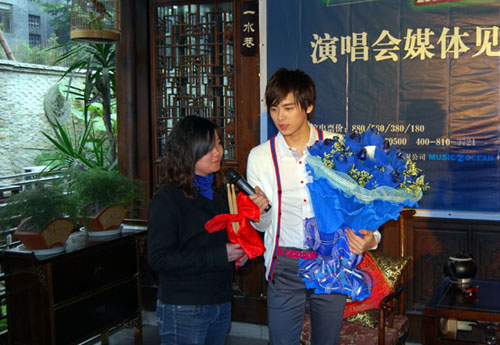 20日李易峰帶著獲獎的喜氣回到成都,為12月“她來聽我的演唱會”個唱做宣傳。他十分有心的選在環境幽雅的茶館,親自沖泡功夫茶與家鄉媒體輕松聊天,嫻熟的功夫茶藝令人很難將他與平日陽光動感的“校草”形象聯系在一起。李易峰表示成都人愛喝茶,從小也受到家人的影響,但茶道卻是一個人在北京時為了打發時間學會的,后來發現在沖泡功夫茶時心容易安靜下來,對愛沖動的他而言是很好的心態鍛煉。李易峰也巧妙的將自己的成都個唱比作“茶”:在冬天給人溫暖,并值得慢慢回味。