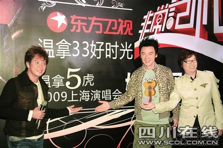 昨日,譚詠麟鐘鎮(zhèn)濤現(xiàn)身上海為“溫拿五虎2009上海演唱會(huì)”宣傳,譚校長無意中泄密——